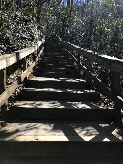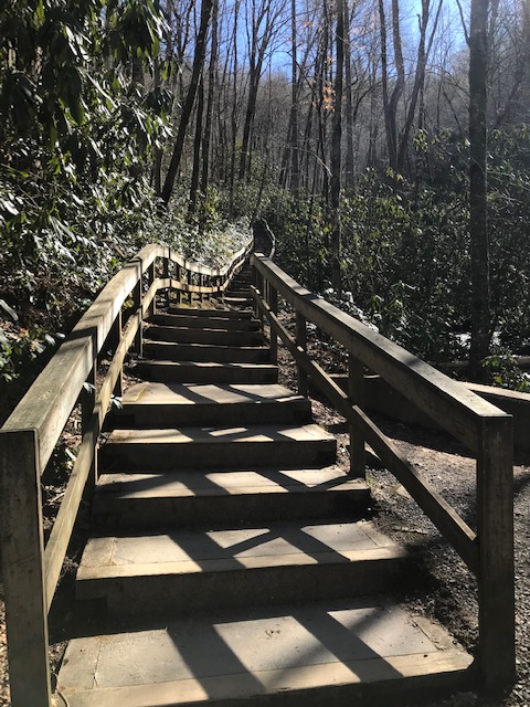 There are few things more spectacular in nature than a waterfall. The sure splendor of seeing the water cascading down on the rocks below is both awe inspiring and breathtaking. Of course, not all waterfalls are created equally. I have been fortunate enough to see first-hand places like Niagara with all its volume and power as well as Yosemite Falls with its majesty and towering presence. Mingo Falls, on the doorstep of the Great Smoky Mountains, is a great waterfall that while not on the same level as those mentioned above, has charm and splendor all its own. As waterfalls go, this one is as easy to get to as they come. And while easy is a relative term in hiking vernacular, the distance from start to finish is only ¼ mile one way, albeit there is some elevation change that is helped along by what is between 160-170 steps. Standing at the base and looking up at the ascending stairs can be a little daunting for all those that are not in the physical shape or as young as they once were, but as with every waterfall hike I have ever completed, it is well worth the effort at the end. (Pro Tip: Probably best not to eat something like a cheeseburger while sitting in the parking area minutes before you ascend the stairs, but who would do such a thing?) Mingo Falls is approximately 120 feet tall and is one of the tallest waterfalls in southern Appalachia. There is a wooden bridge at the base of the falls that is wonderful for taking pictures or selfies from, as you celebrate defeating both the steps and that aforementioned cheeseburger. This is a definite hike for all those who love waterfalls or just a scenic, somewhat easy walk through the woods. You can find more information about this great waterfall here: https://visitcherokeenc.com/mingo-falls-waterfall/