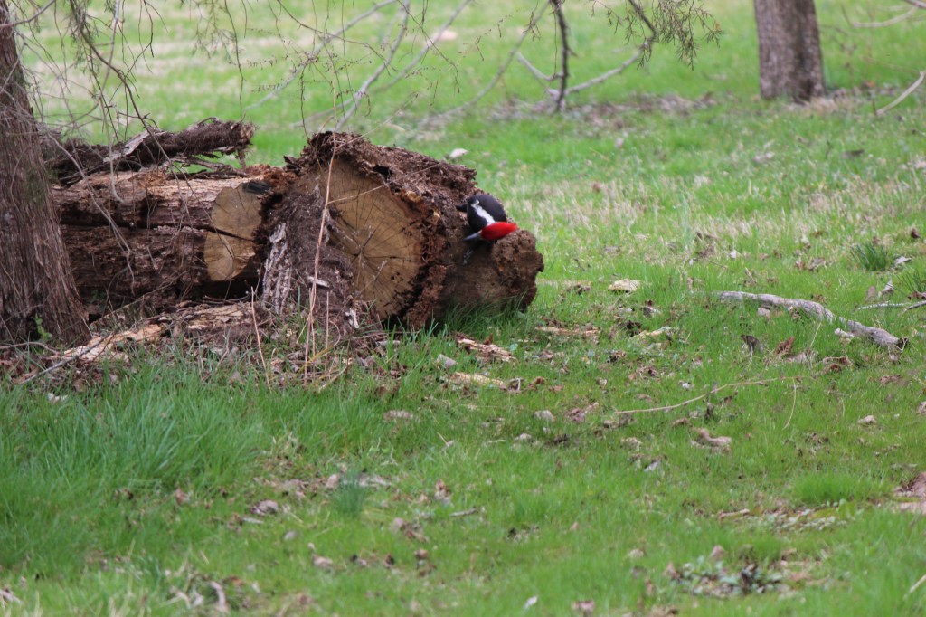 It is hard to miss this giant of a bird, not only because of its size, but also its distinct markings. It is as big as a crow with a black body and bright red crest with white stripes running down its neck. They are expert excavators who will do so to make a new nest each year and also for other birds, small mammals, reptiles, and the occasional garden gnome to use in its stead. Ok, I am not sure about the reptiles, but I believe the woodpeckers just hollow out the tree because they enjoy it, although that may not be a scientific certainty that can be proven. And if there happen to be any carpenter ants reading this, be warned—these guys are carpenter ant eating fiends. They will occasionally visit birdfeeders as well as K2’s mom can attest to (she shall remain nameless for now to protect the innocent). Besides, she knows who she is… The Pileated Woodpecker is common, in the southeastern part of the country, and it a cool looking bird we found in our backyard. Enjoy the pictures and the link below to hear its incredibly unique call.