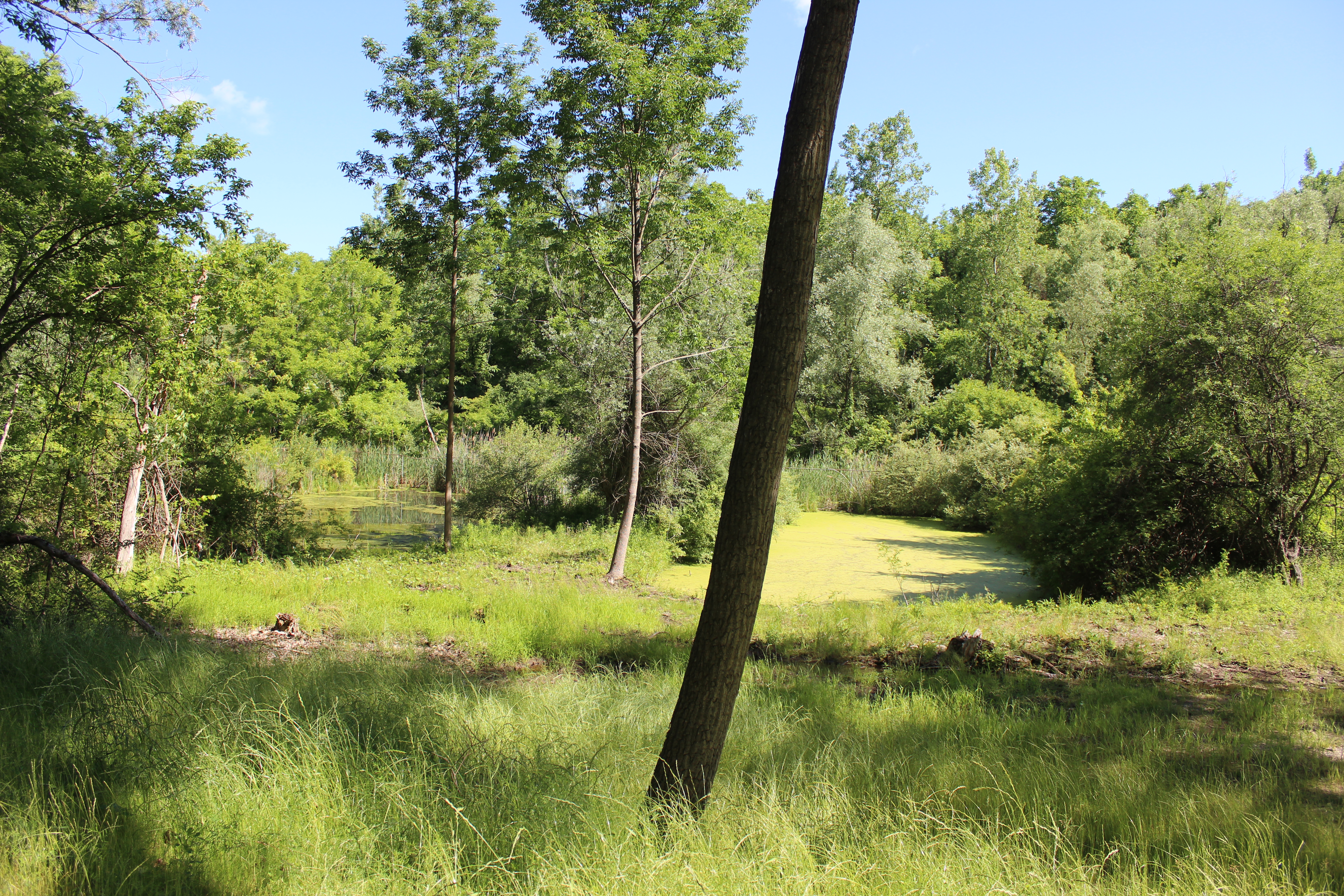 It is peaceful here this morning as I sit alone by the ponds. I understand the desire of Thoreau to escape to the woods and live in a deliberate way. There is a simplicity here that is hard to find in the world outside of this haven of mine. I sit and observe for what must have been hours. I do not look at the time because I am in no hurry today. The clouds move sporadically in front of the sun, acting as a temporary umbrella to block the rays from streaming down on my spot beside the ponds. Finally, and just as I had suspected earlier, the wind had indeed pushed the clouds into my bubble from the world, blanketing my sanctuary in an ominous grey. I pack my things and make my way back the way I had come hours earlier. I sit on the same bench as before and stare out at the water in the canal. Now I can hear the sound of traffic on the nearby bridge. A delivery truck beeps its way into a parking place just behind me and the driver gets out to unload his wares. To my left, I see that the path is now crowded with people. On the bridge I can see the line of vehicles sitting in idle and waiting for the light to change so they can move freely again. But their freedom has constraints, and their movement is slow. No, not slow moving like the water in the canal before me, but rather it is more hindered in its origin, more mechanical in its nature, more—unnatural in its progress forward. Two kayaks float by me and quietly cut through the water and drift under the bridge to the east. I watch as the two kayakers look up at the tangled web of cars above them, as they themselves glide under and away. I am not sure, but I believe I saw them smile. A small wet substance hits my face and snaps me out of my daydream. The rain has come! Back to reality…