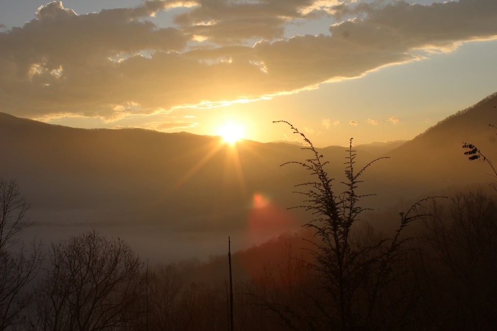 Just north of the Great Smoky Mountains and serving as a gateway town for the park, lies Wears Valley, Tennessee. It is a small farming community that grows exponentially in size during the peak visitation season to the big park that sits just south of the town. Luckily for K2 and me, we visited during the offseason. And while nearby Pigeon Forge was still a nightmare to drive around in, Wears Valley and neighboring Townsend were exhaling from the recent Fall foliage deluge of sightseers to the Southern Appalachians, which made for easy access to the park and the surrounding small towns. Our criteria for choosing housing, especially cabins in this type of mountain setting, is quite simple: How is the view…i.e. Can we see a lot of other cabins as we sit on our deck and is there a fireplace? While the latter is commonplace in the world of cabins in the Smokies, the former is increasingly harder to come by these days as new developments are engulfing the mountain side like newly hatched locusts on a field of green crops. Seeking seclusion in our stay, we stumbled upon a truly Unforgettable cabin to relax and recharge in for a few days and nights. No, really that was the name of the cabin—Unforgettable! Quiet and secluded with a magnificent view of actual trees and the western sky, it was everything we could ask for and more. Places like this are inspiring. They stir your spirit and awaken your soul or as author Victoria Erickson so eloquently put it, “Although I deeply love oceans, deserts, and other wild landscapes, it is only mountains that beckon me with that sort of painful magnetic pull to walk deeper and deeper into their beauty.” I must concur with Victoria. Nothing beckons me more than the allure of the mountains out my window, trees that stretch to the heavens, a seldom traveled path that disappears into the brush over the horizon, and a stream snaking its way through the woods and freefalling over a wall of rocks and earth that were cut into the side of a mountain by unseen hands, in a time so long before my time. And like our cabin’s namesake, a quick get away to the mountains, well, it is always Unforgettable!