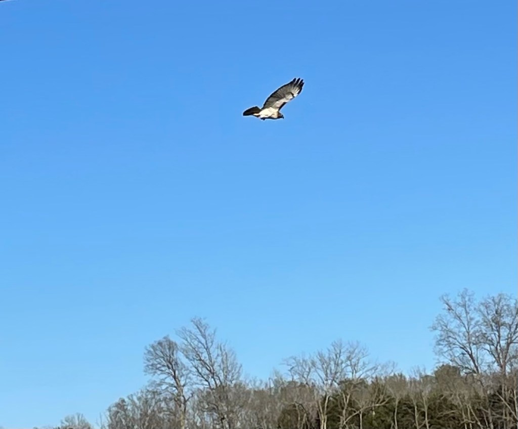 I saw a hawk with wings stretched wide,